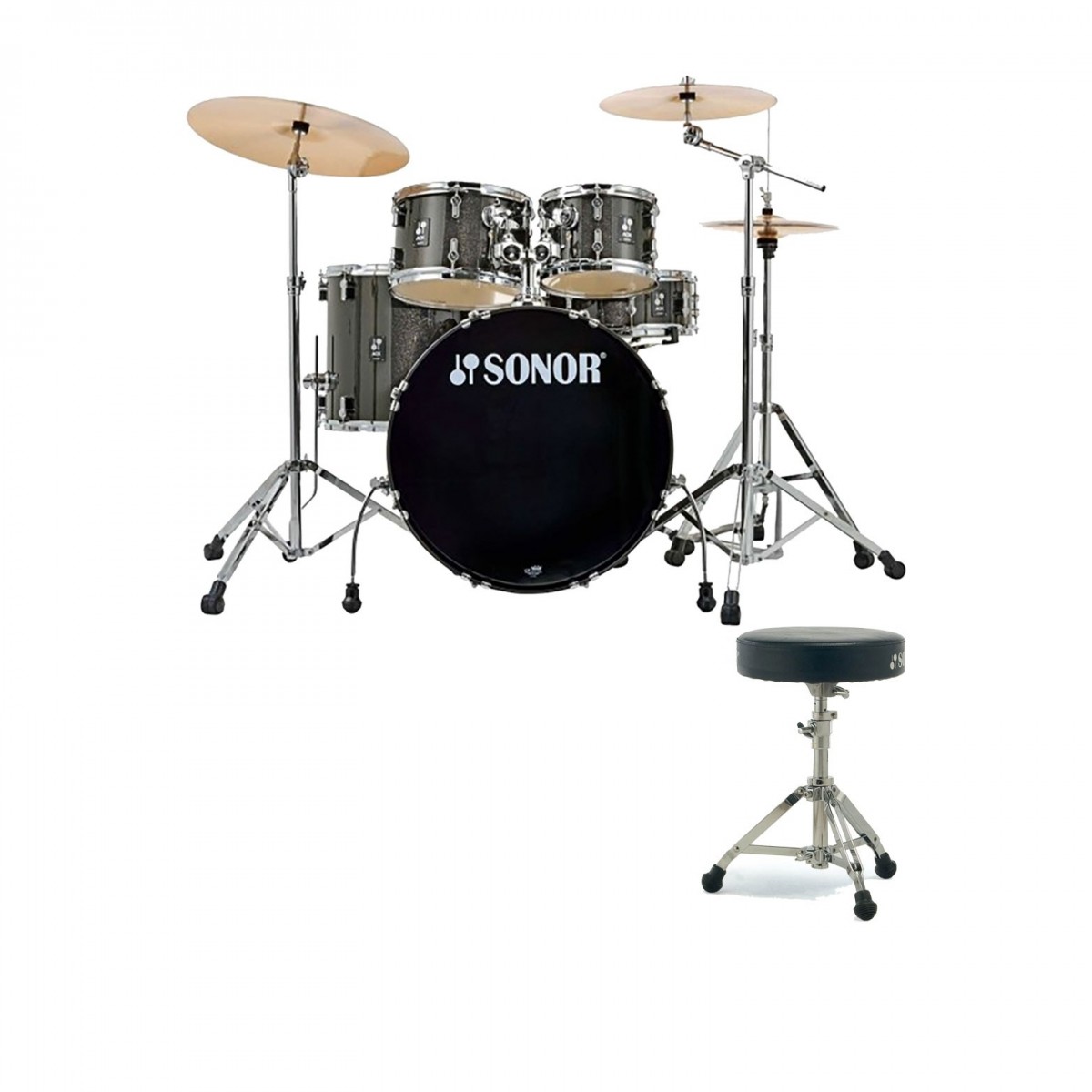Sonor AQX 22" 5pc Drum Kit w/Hardware & Free Throne, Black Midnight Sparkle