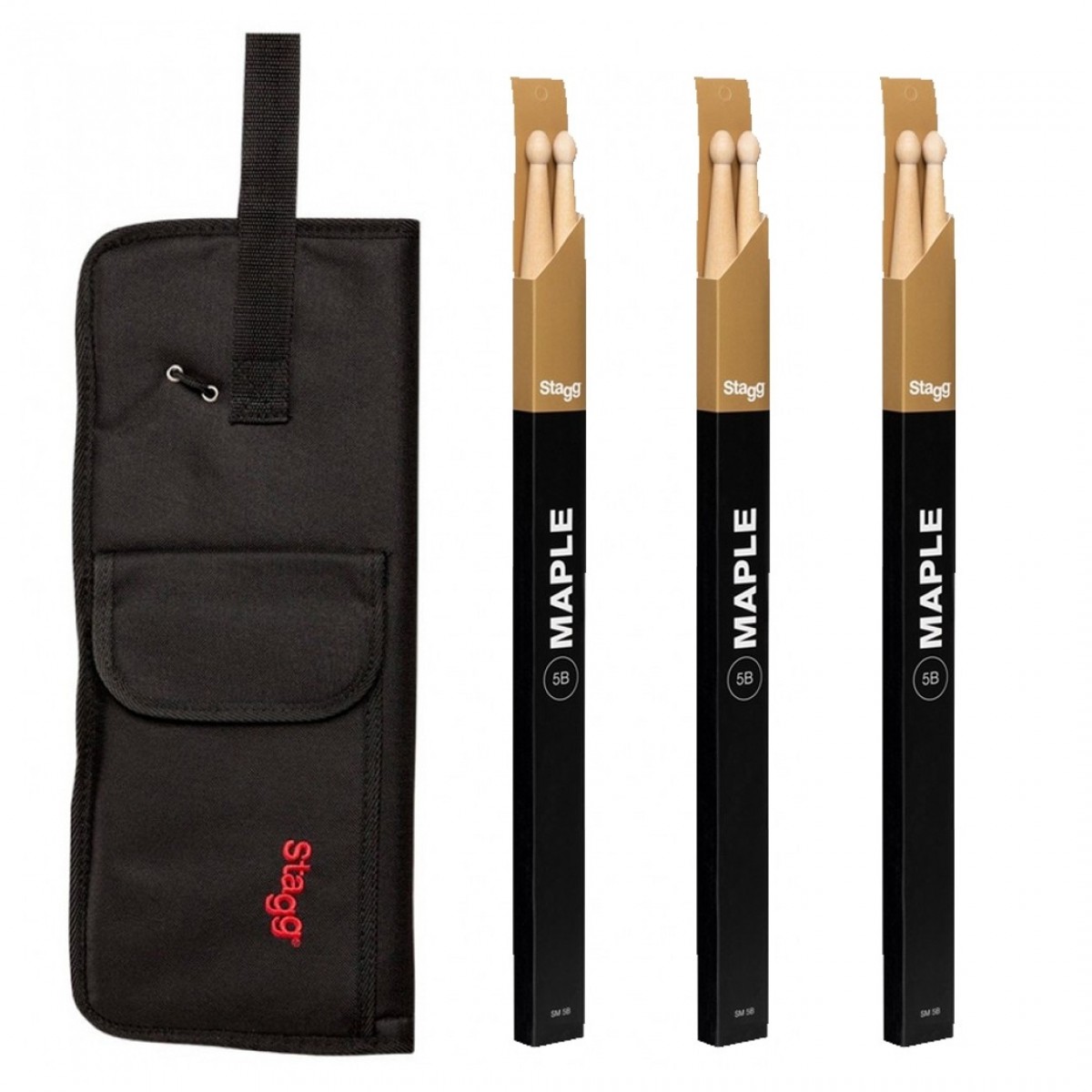 Stagg Nylon Stick Bag & Maple 5B Drumsticks, Wood Tip