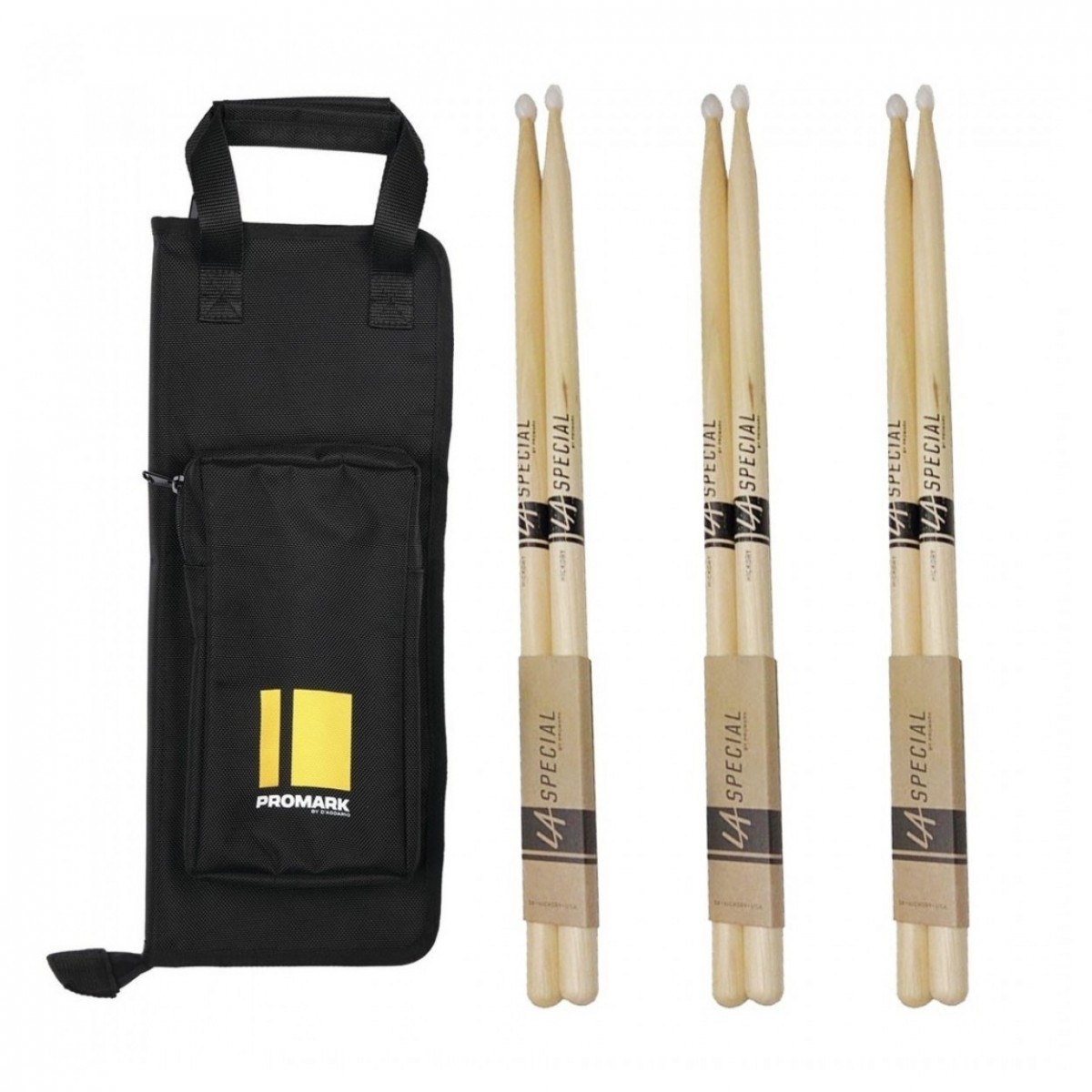 Promark Stick Bag & LA 5B Nylon Tip Drumsticks Bundle