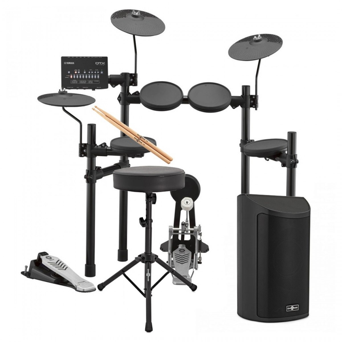 Yamaha DTX402 Electronic Drum Kit with Stool, Sticks and sideKIK Amp