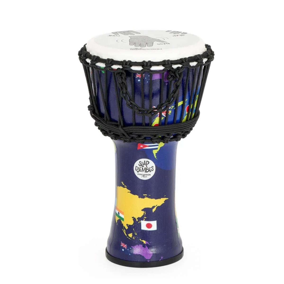 Percussion Plus Slap Djembe, Rope Tuned, 8 inch, World Map