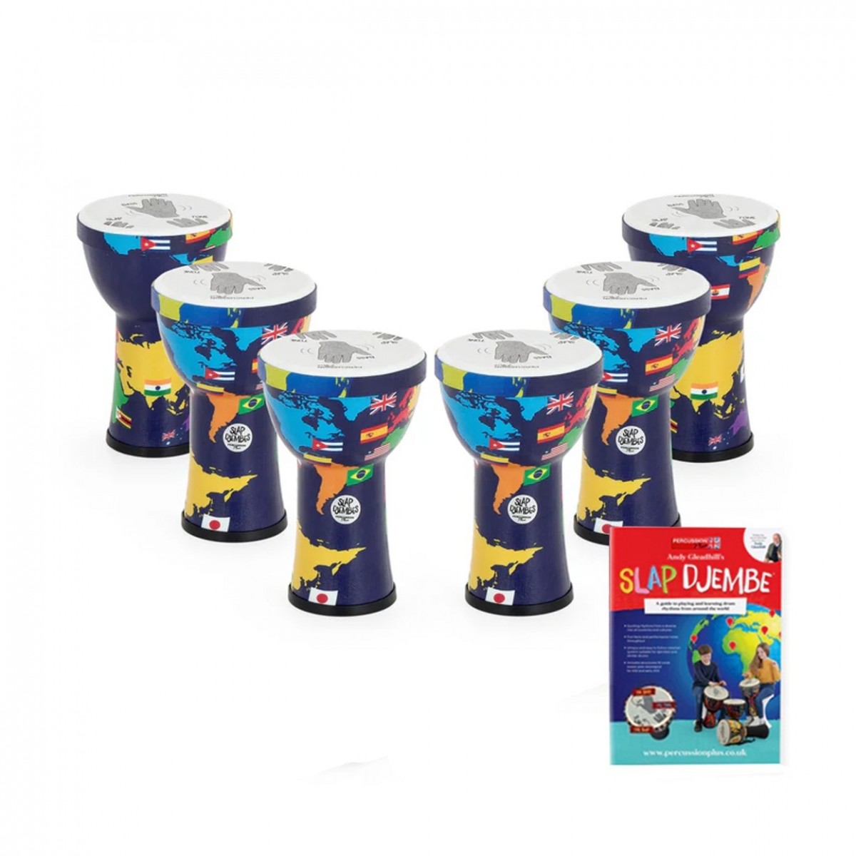 Percussion Plus Slap Djembe Pack, Rope Tuned, 6 inch head, 6 Player Pack, World Map
