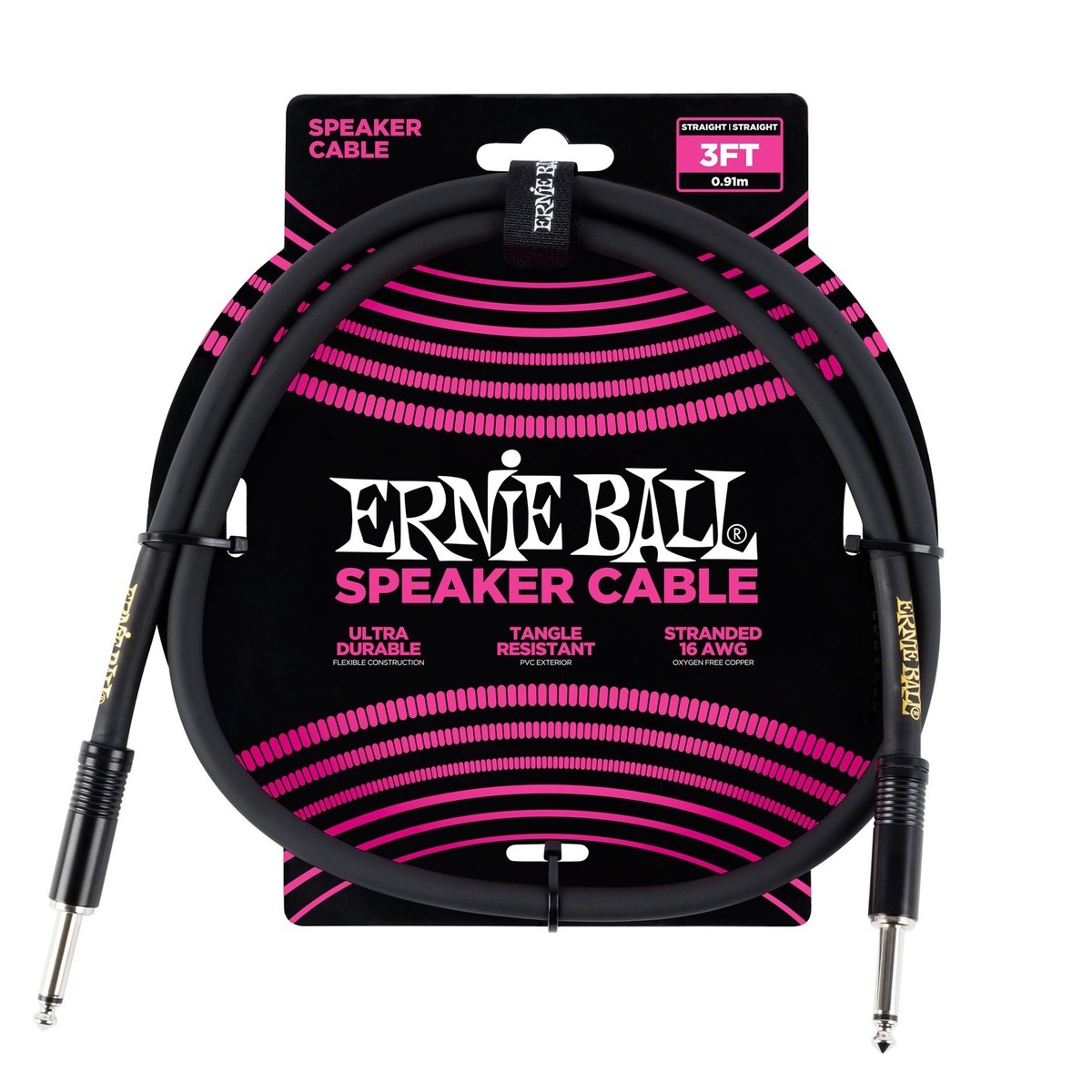 Ernie Ball P06071 3ft Straight-Straight Speaker Cable, Black