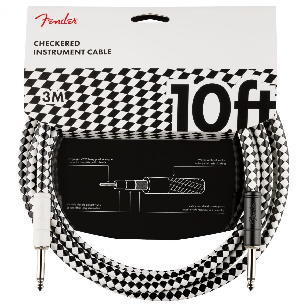 Fender Professional 3M/10ft Instrument Cable, Checkerboard