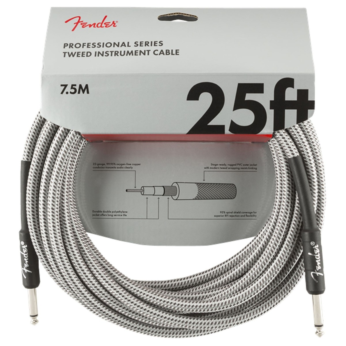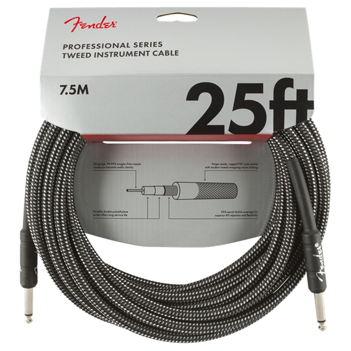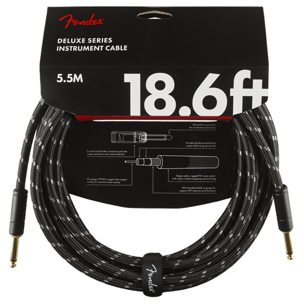 Fender Deluxe 18.6ft Straight Instrument Cable, Tweed