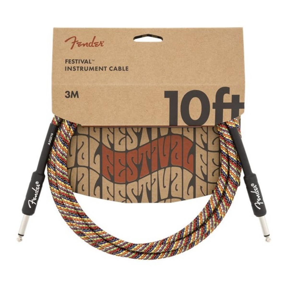 Fender Pure Hemp 10ft Straight Instrument Cable, Rainbow