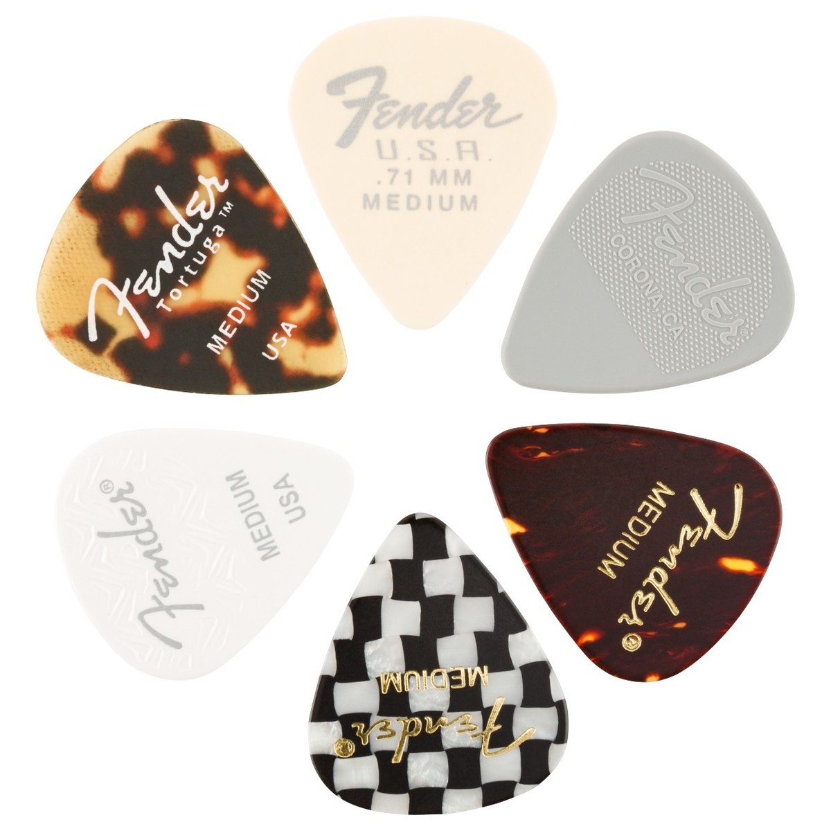 Fender Picks 351 Shape Material Medley Medium. Pack of 6