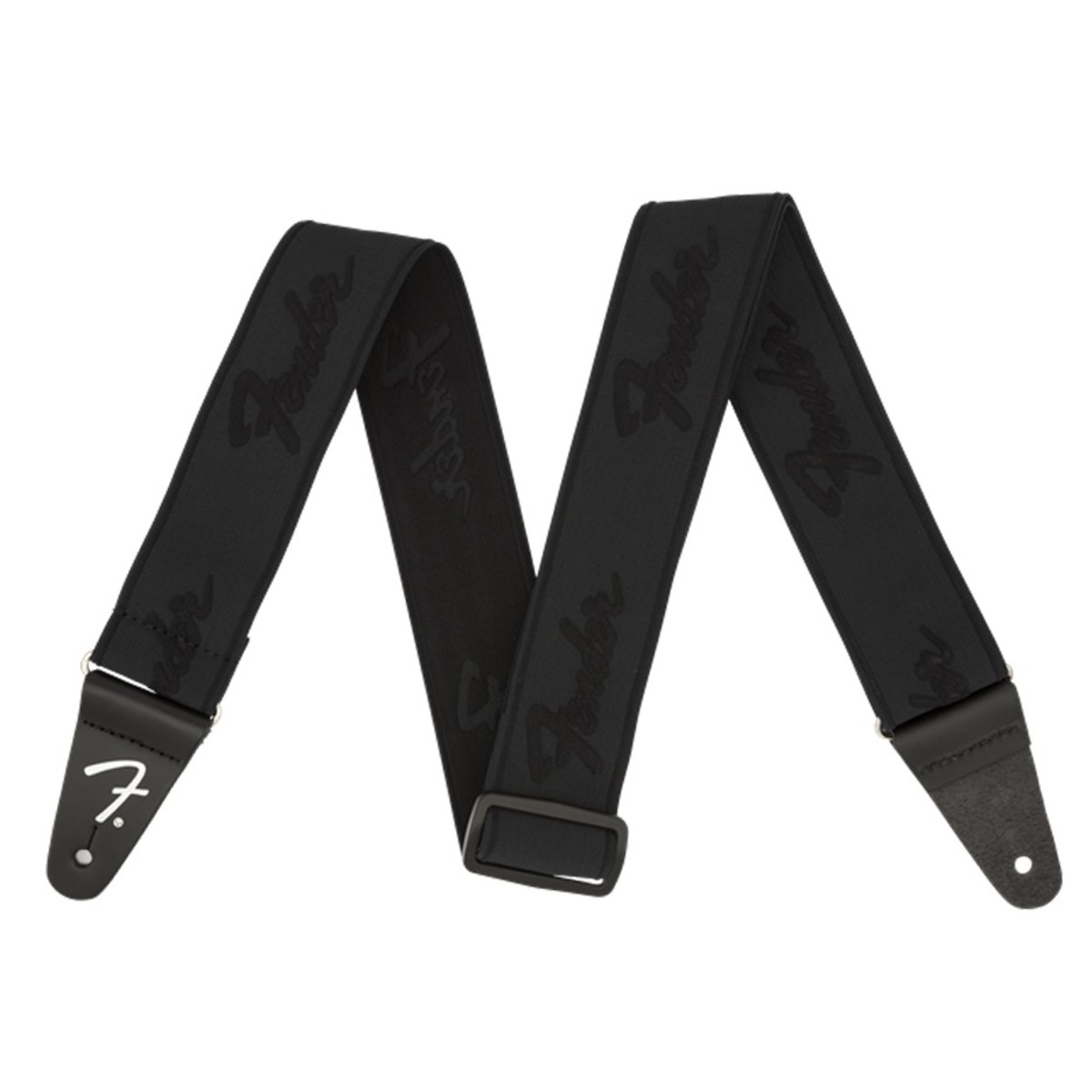 Fender WeighLess 2" Running Logo Guitar Strap, Black/Black