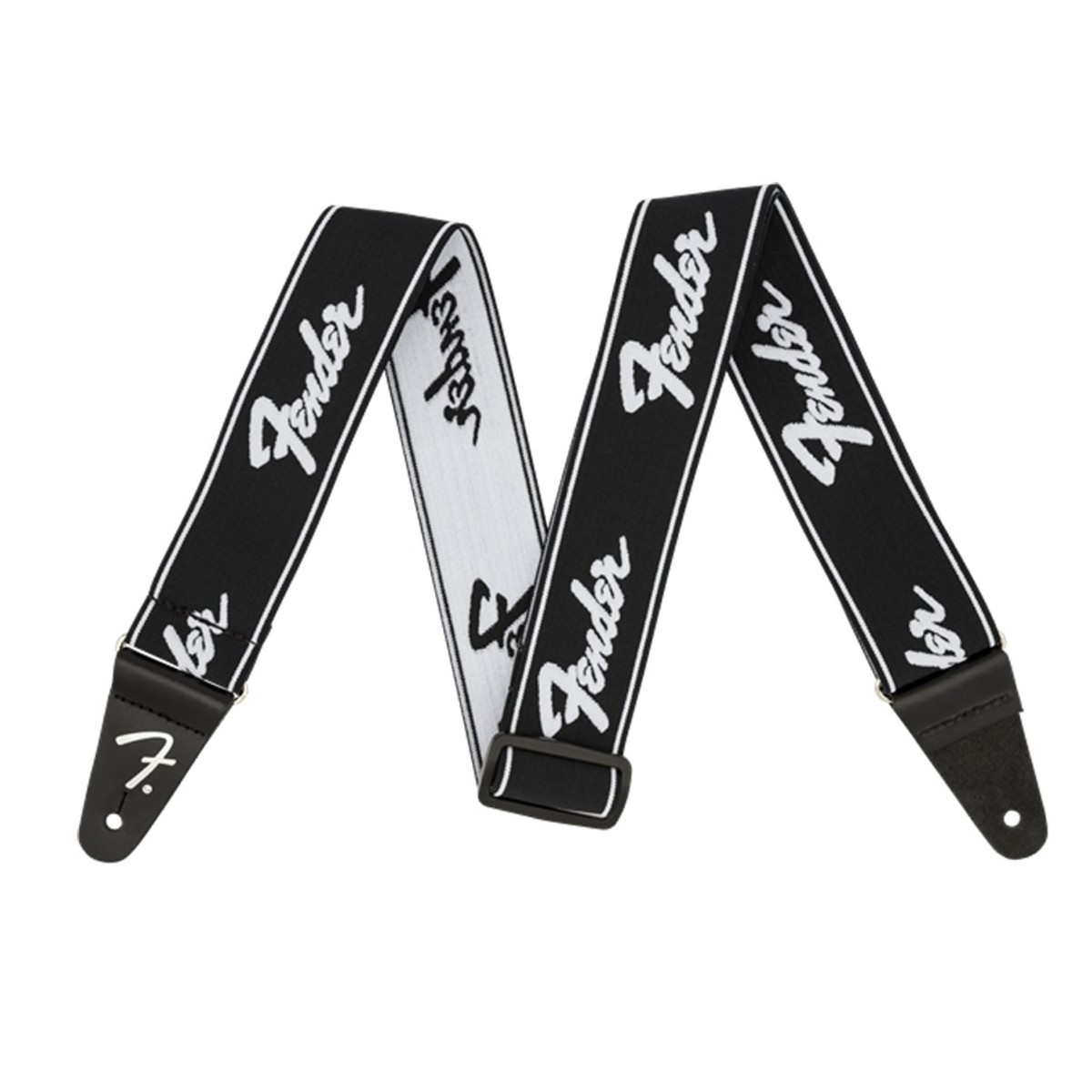 Fender WeighLess 2" Running Logo Guitar Strap, Black/White