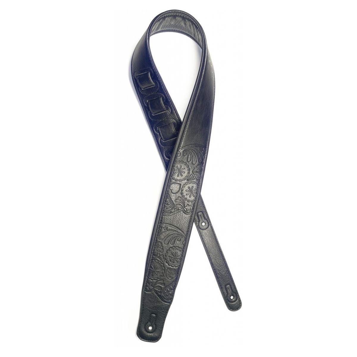 Stagg Padded Leather Adjustable Guitar Strap, Black Mexican Skull