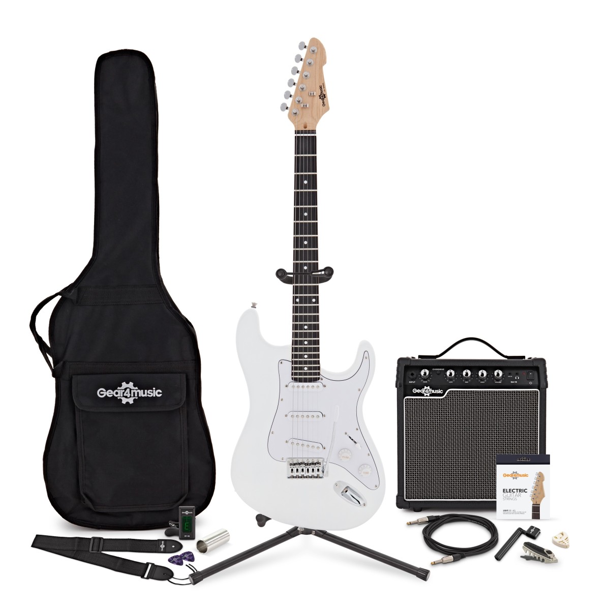 LA Electric Guitar White, 15W Guitar Amp & Ultimate Accessory Pack