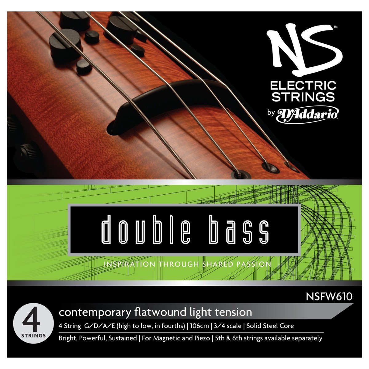 D'Addario NS Electric Contemporary Double Bass String Set, 3/4, Light