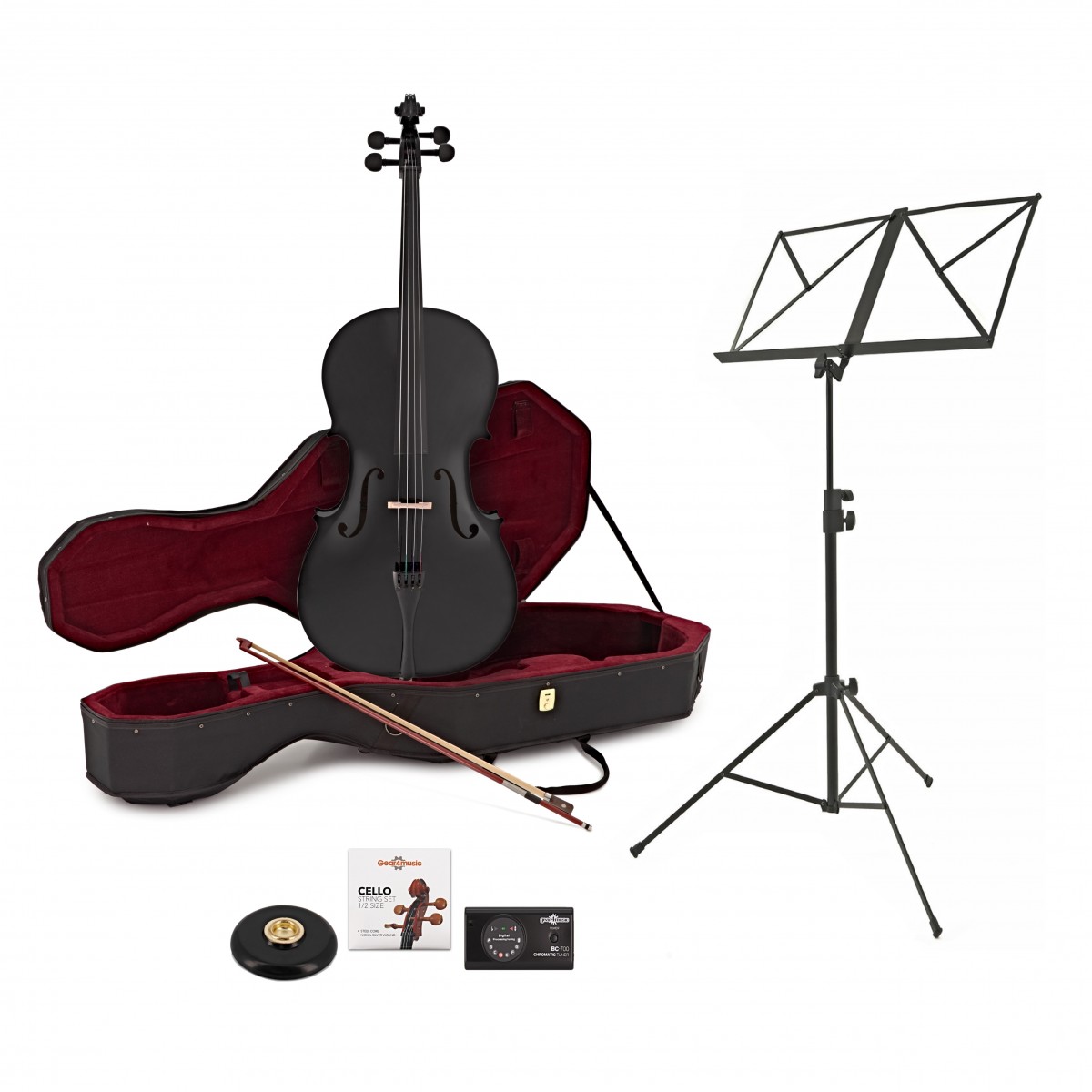 Student 1/2 Size Cello Beginner Pack by Gear4music, Black