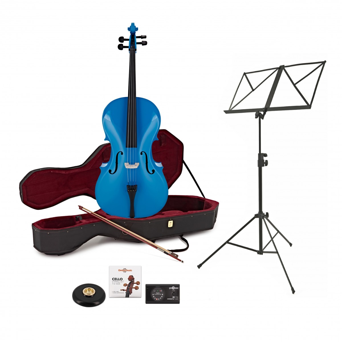 Student 1/2 Size Cello Beginner Pack by Gear4music, Blue