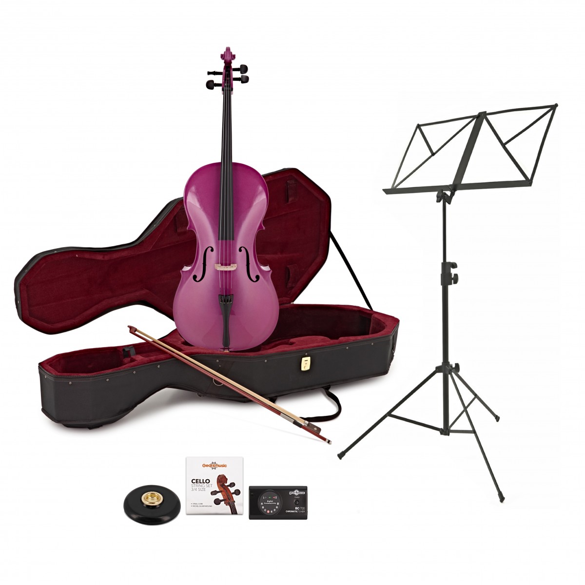 Student Full Size Cello Beginner Pack by Gear4music, Purple