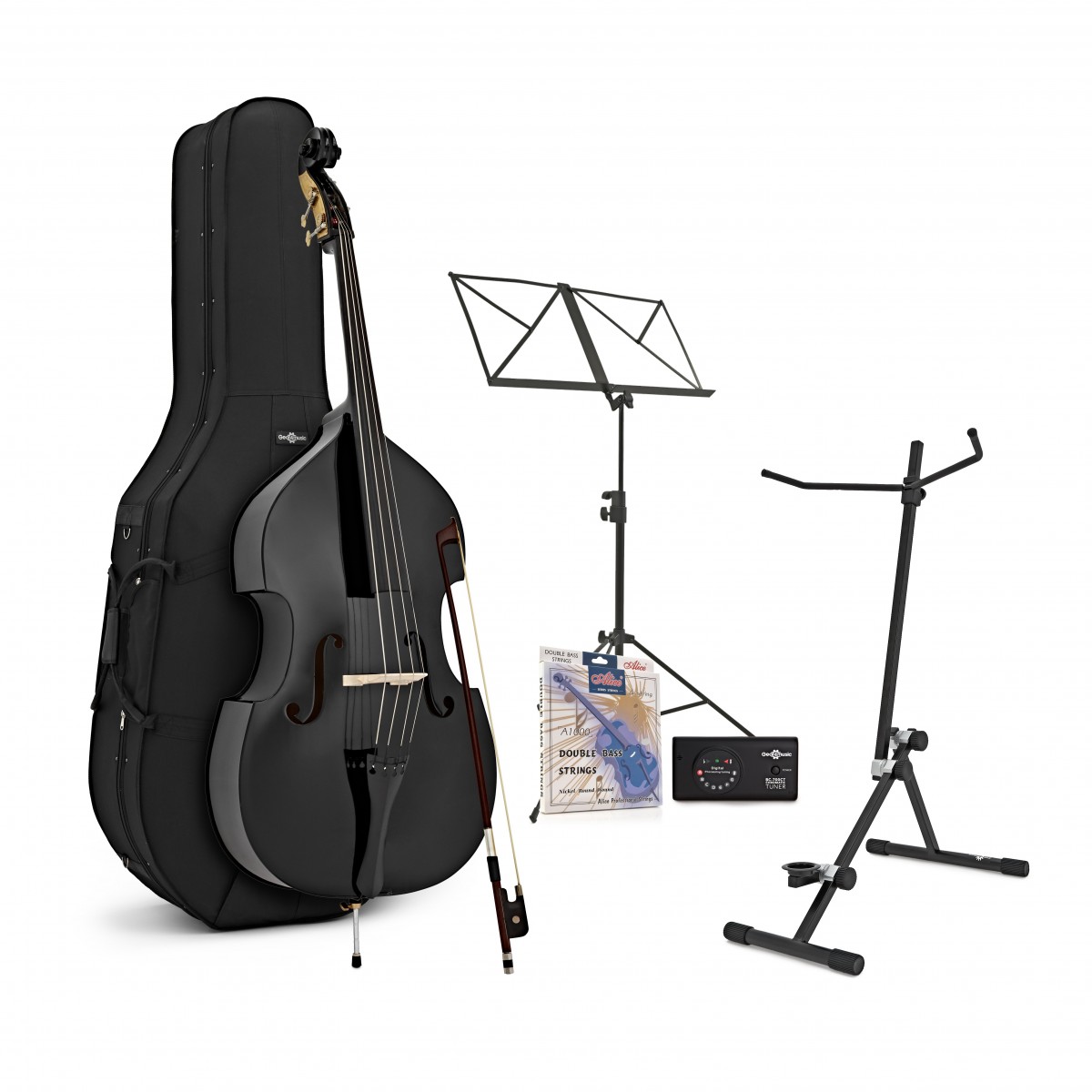 Student 3/4 Double Bass Beginner Pack by Gear4music, Black