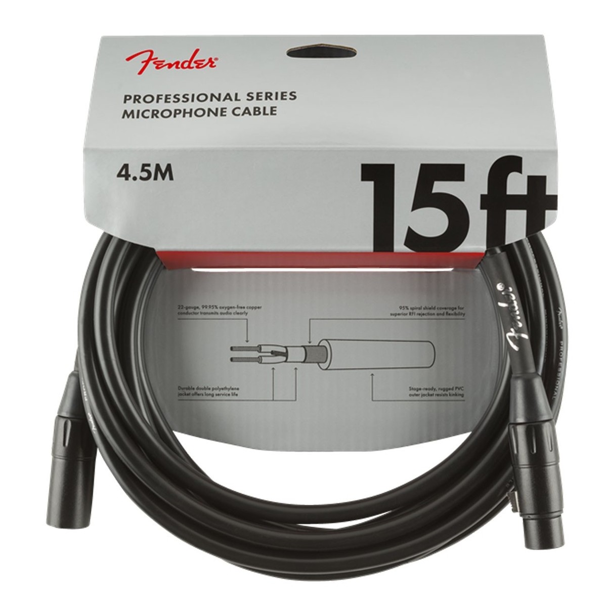 Fender Professional 4.5M/15ft Microphone Cable, Black