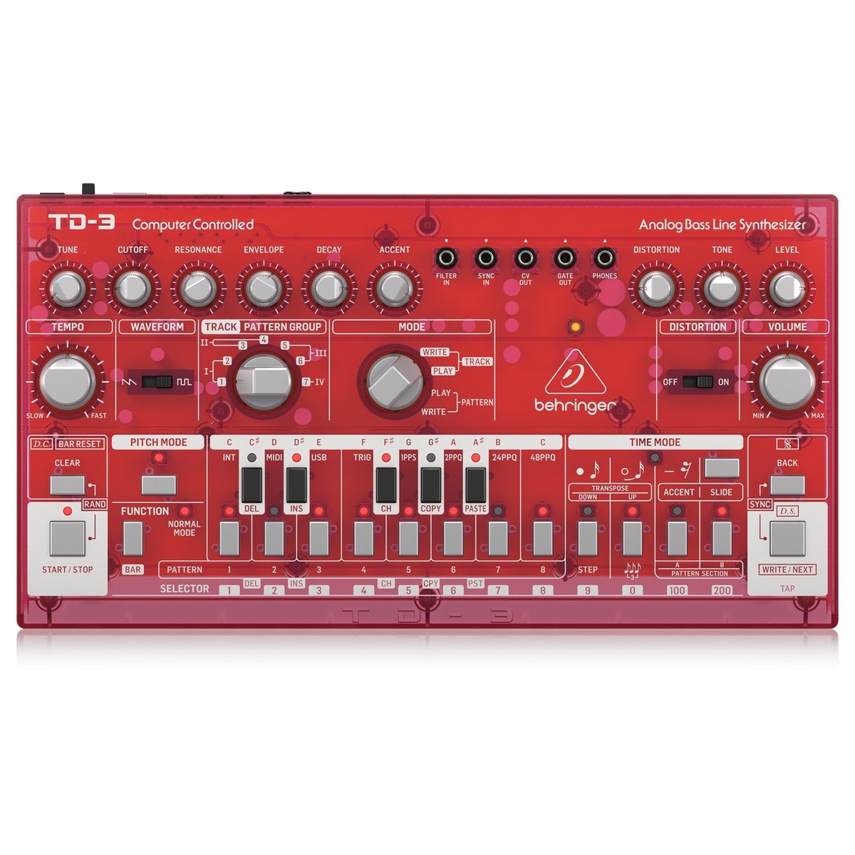 Behringer TD-3 Analog Bass Line Synthesizer, Transparent Red