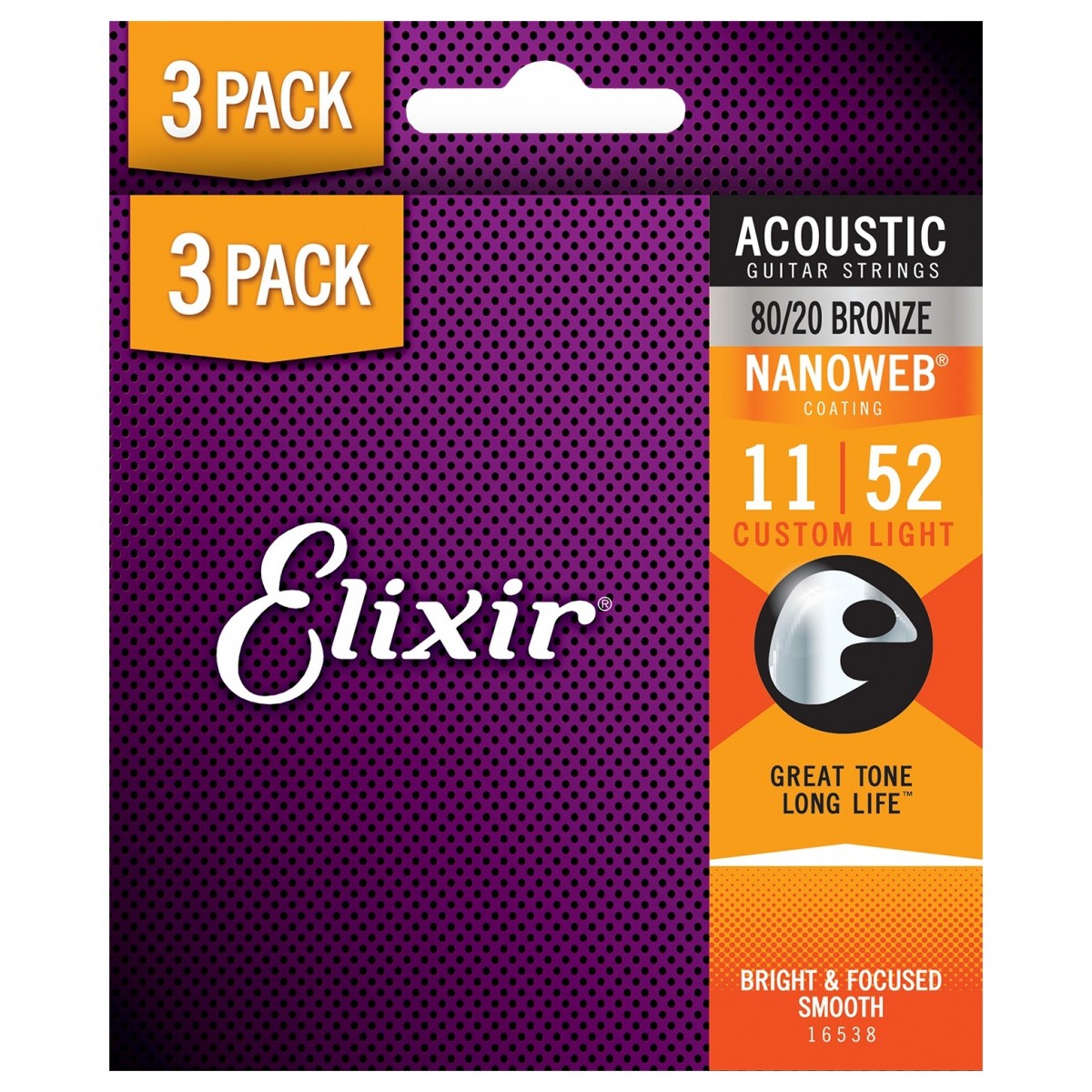 Elixir 80/20 Nanoweb Acoustic Strings 3 Pack, 11-52