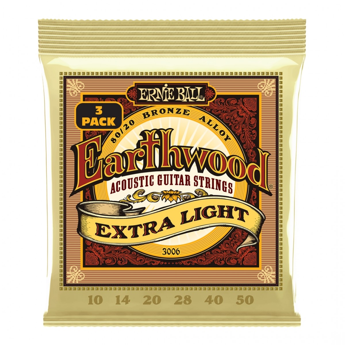 Ernie Ball P03006 Earthwood Phosphor Bronze Extra Light 10-50 (3 Set)