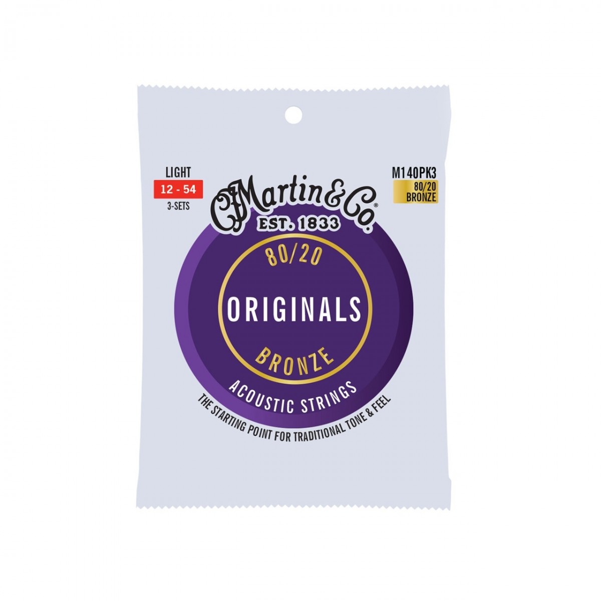 Martin M140PK3 Original 80/20 Acoustic Strings, 12-54, 3 Pack