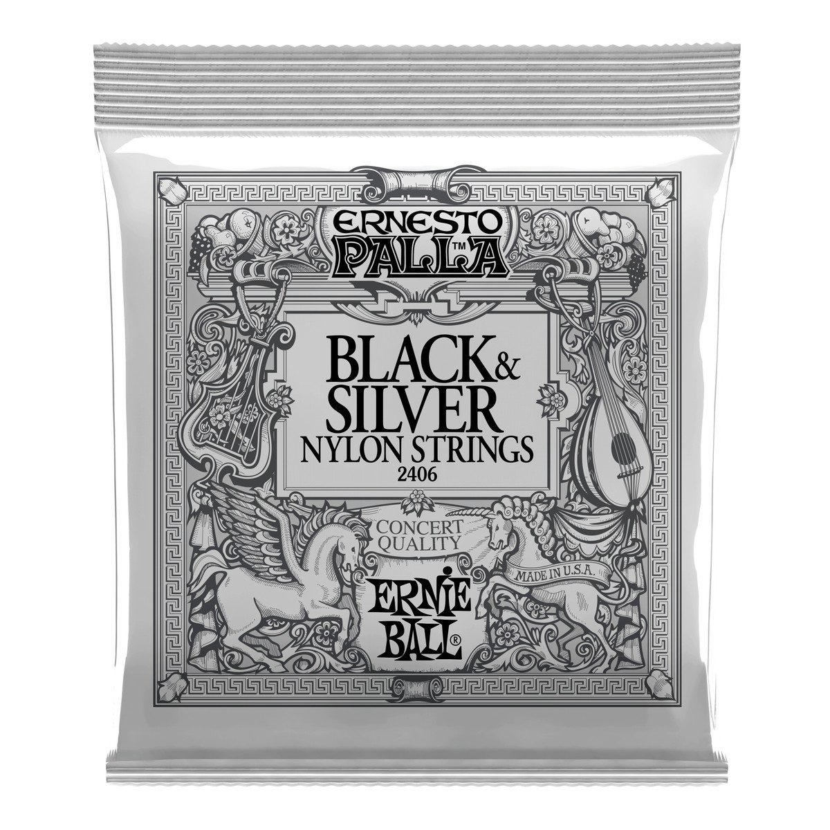 Ernie Ball 2406 Ernesto Palla Nylon Black & Silver Set, 28-48