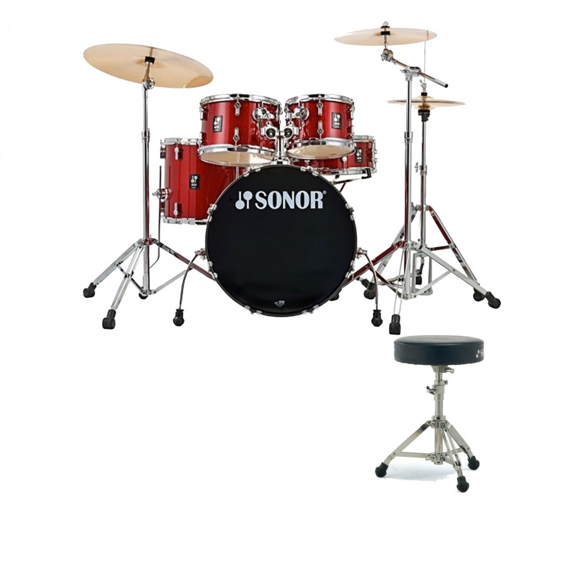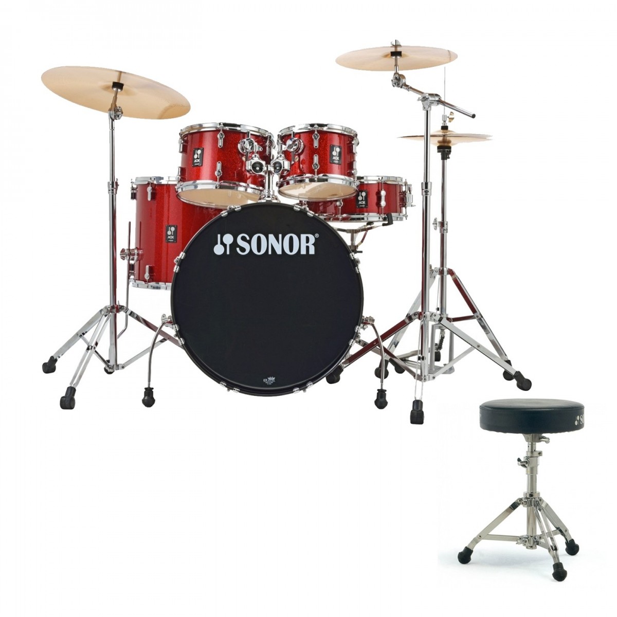 Sonor AQX 22" 5pc Drum Kit w/Hardware & Free Throne, Red Moon Sparkle