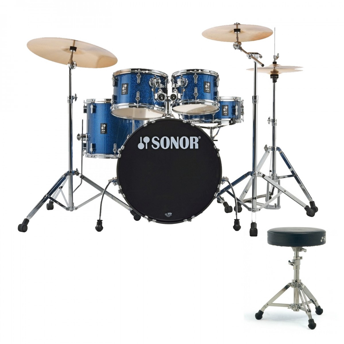 Sonor AQX 22" 5pc Drum Kit w/Hardware & Free Throne, Blue Ocean Sparkle