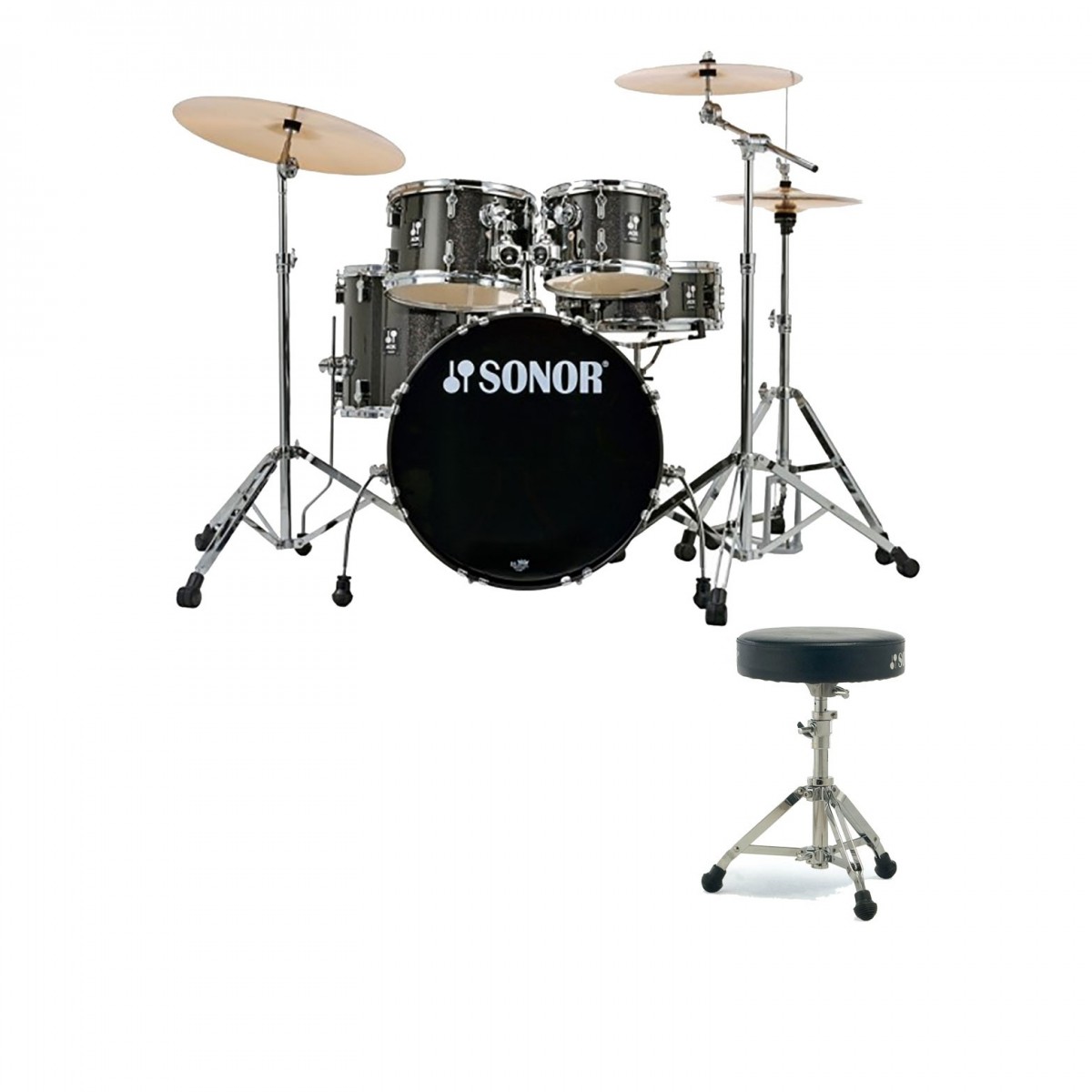 Sonor AQX 20" 5pc Drum Kit w/Hardware & Free Throne, Black Midnight Sparkle
