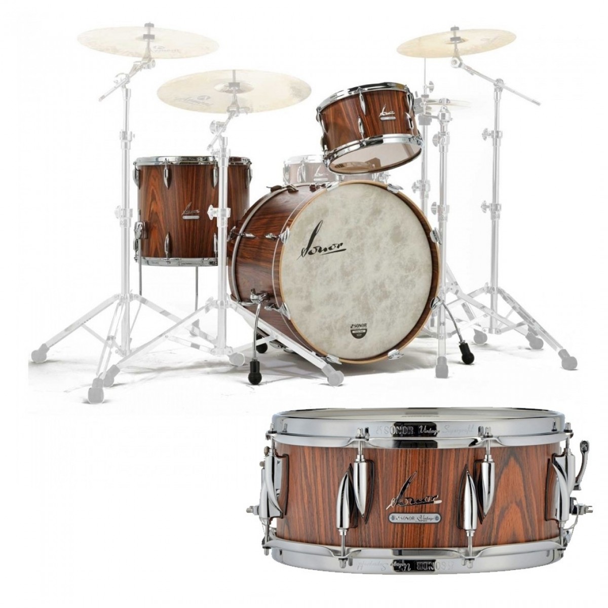 Sonor Vintage 22" 3pc Shell Pack w/Free Snare, Rosewood Semi Gloss