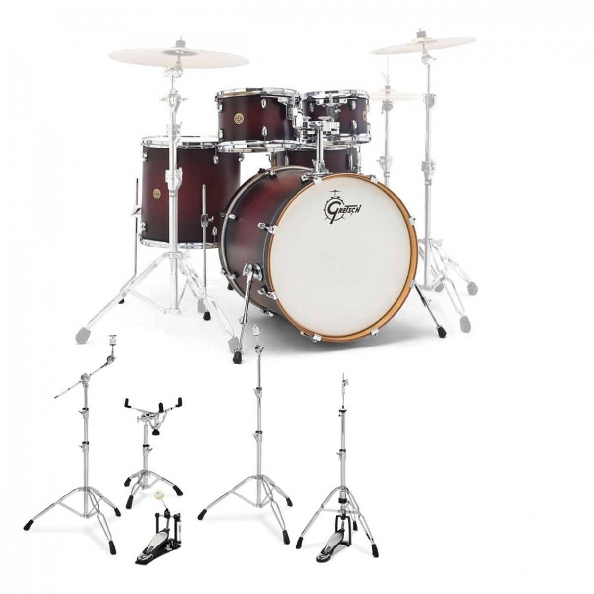 Gretsch Catalina Maple 5pc Complete Pro Drum Kit, Satin Cherry Burst