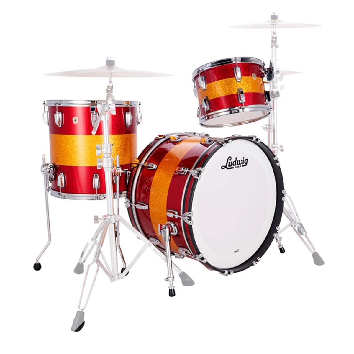 Ludwig Classic Maple 22" Fab 3pc Shell Pack, Triband Red/Gold/Red Sparkle
