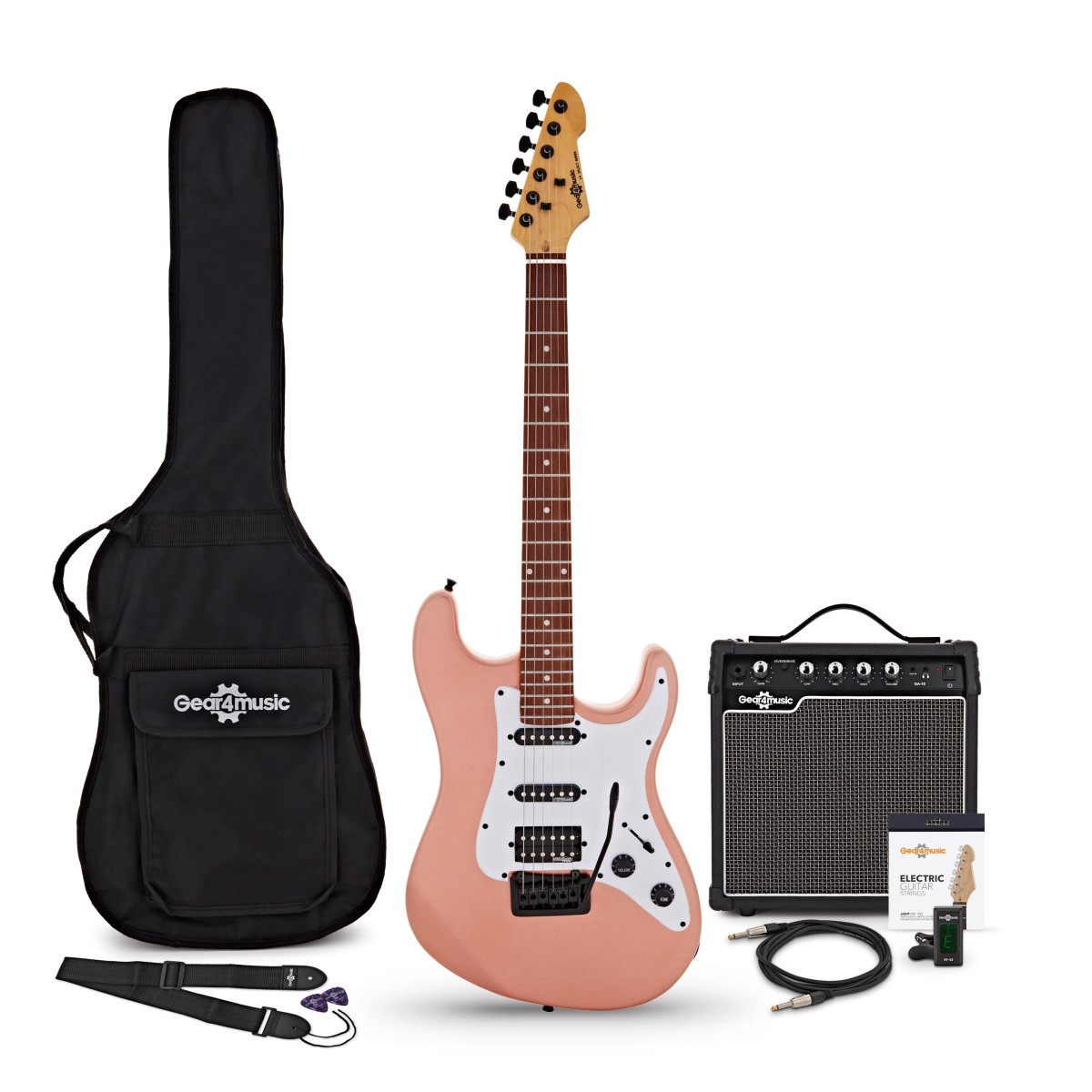 LA Select Modern Electric Guitar Pink, 15W Guitar Amp & Accessory Pack