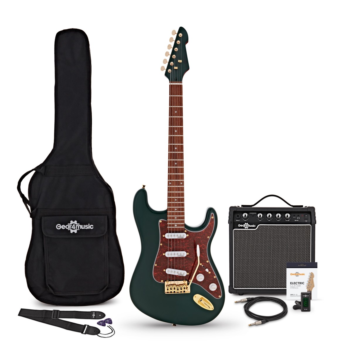 LA Select Legacy Electric Guitar Green, 15W Guitar Amp & Accessory Pack