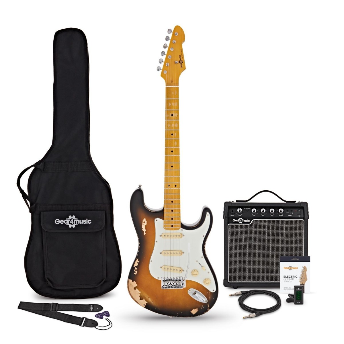 LA Electric Guitar Sunburst, 10W Guitar Amp & Accessory Pack