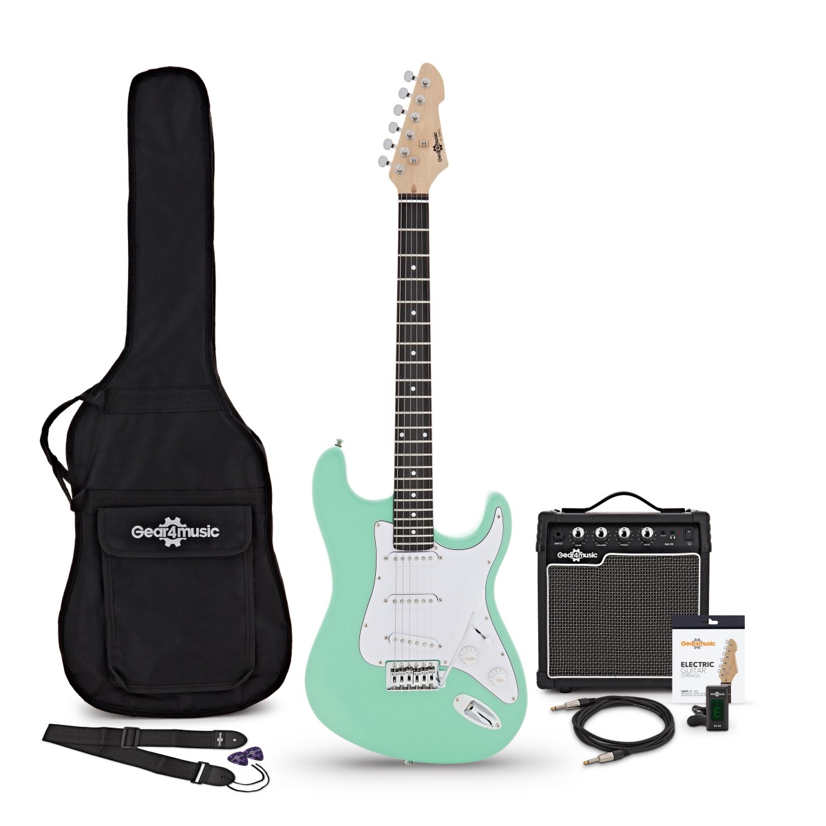 LA Electric Guitar Seafoam Green, 10W Guitar Amp & Accessories