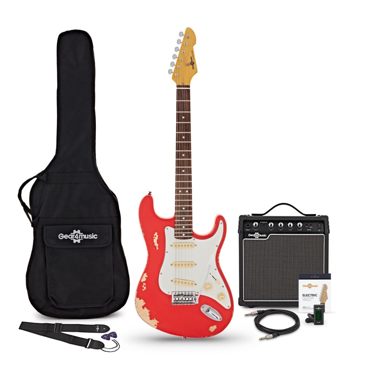LA Electric Guitar Red, 15W Guitar Amp & Ultimate Accessory Pack
