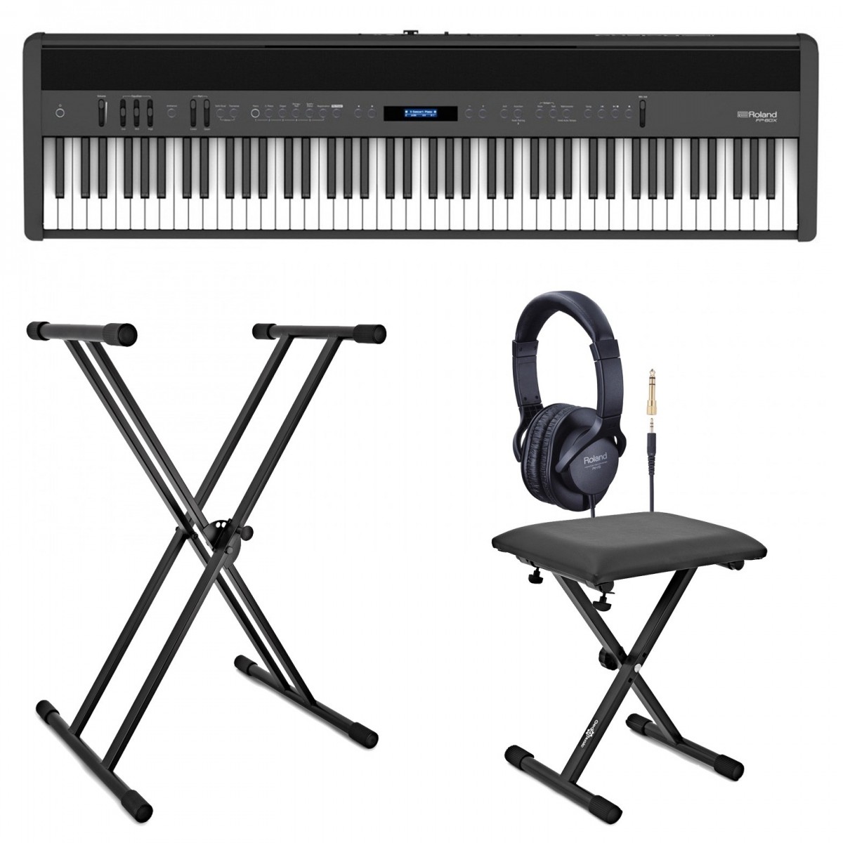 Roland FP-60X Digital Piano with Stand, Stool and Headphones, Black