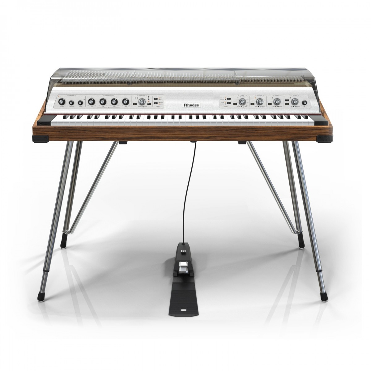 Rhodes MK8 Piano, Deluxe Silver with Walnut Case and Smoked Hood