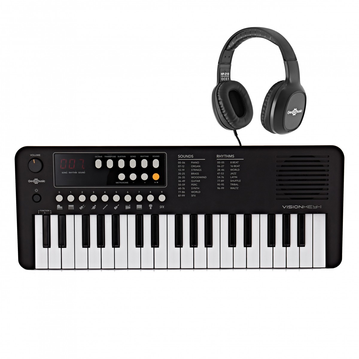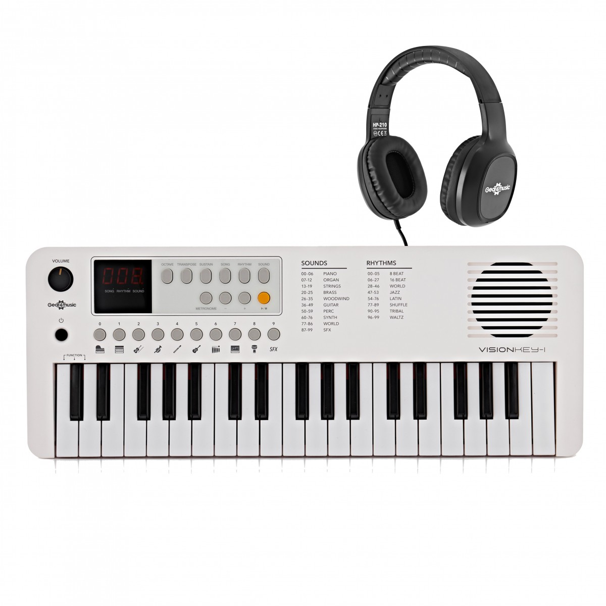 VISIONKEY-1 37 Key Portable Mini Keyboard with Headphones, White