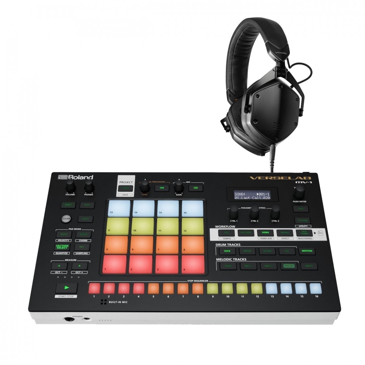 Roland MV-1 Verselab Production Studio with V-Moda M-200 Headphones