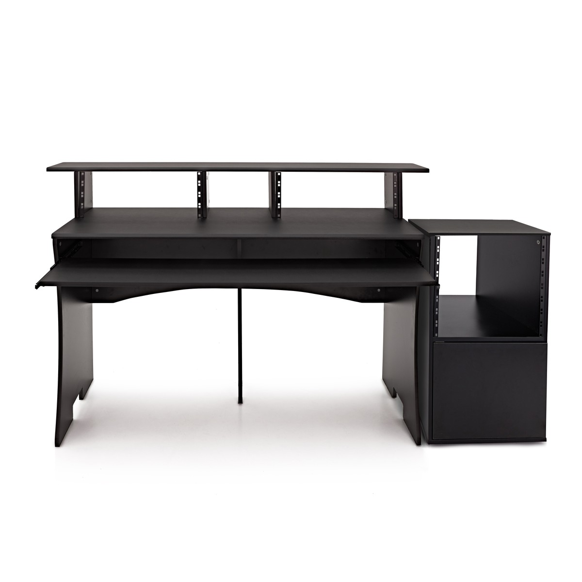 3 Tier Pro Audio Studio Desk + Rack Cabinet, Black by Gear4music