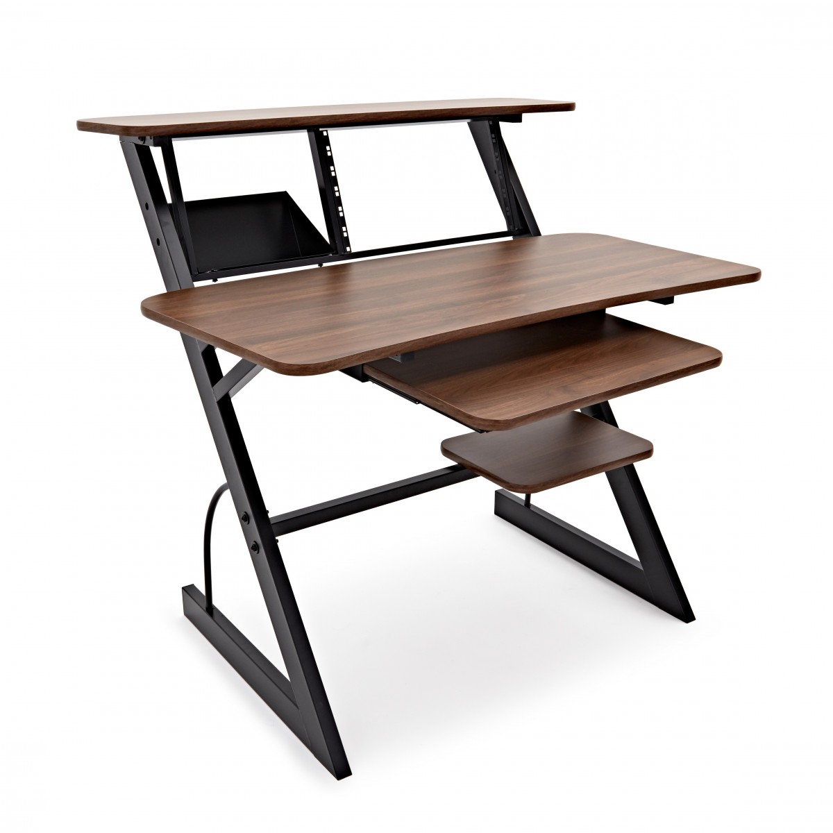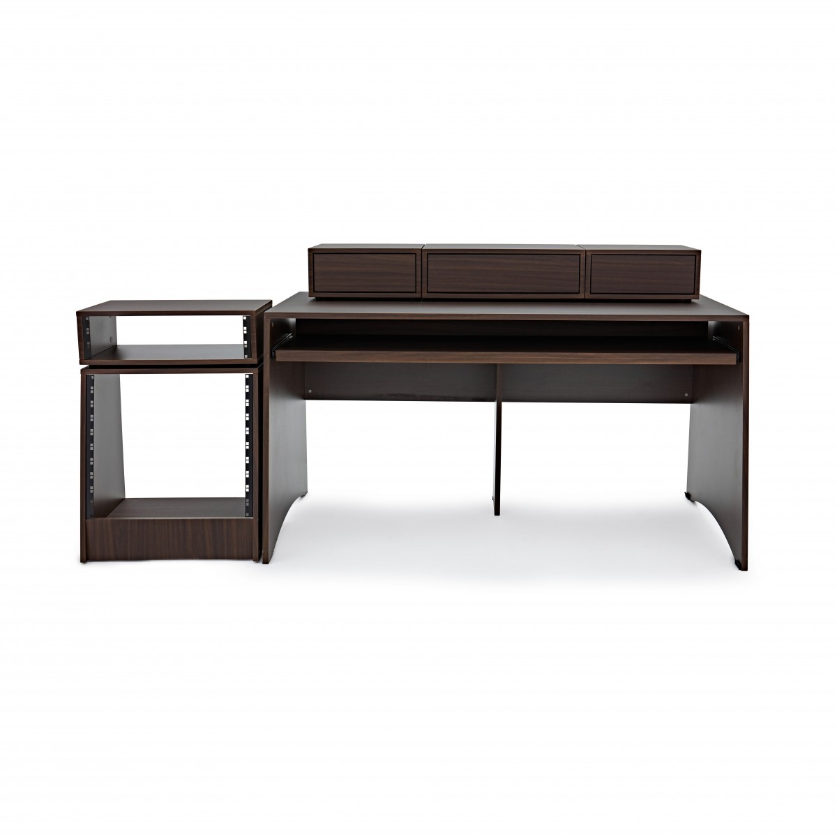 3 Tier Pro Audio Studio Desk + Rack Cabinet, Walnut